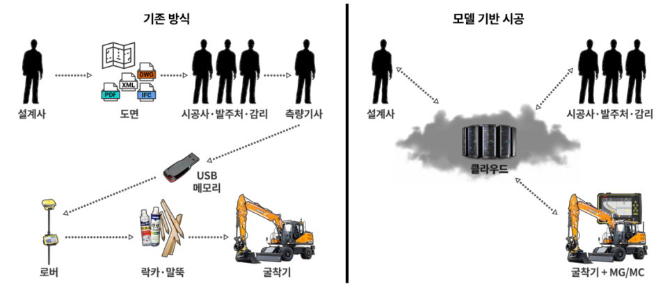 기존 시공 방식과 모델 기반 시공 방식의 비교